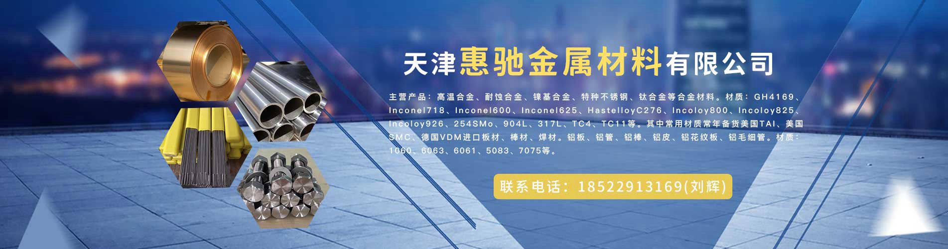 天津惠馳金屬材料有限公司是一家服務(wù)于金屬材料的專業(yè)公司。公司秉承著“專業(yè)、誠信、值得信賴”的經(jīng)營理念,致力合金產(chǎn)品領(lǐng)域提供一流的產(chǎn)品同服務(wù)。我們多年的經(jīng)驗同積累,我們的專業(yè)和不斷地創(chuàng)新,我們的誠信和優(yōu)質(zhì)服務(wù), 得到了各行業(yè)客戶的一致肯定和好評,為企業(yè)贏得了卓越商譽。 ??